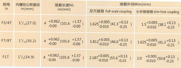 公司生产的复合喷涂防腐接箍分足尺防腐接箍和小井眼防腐接箍两种(外径有扳手方和无扳手方)。分别与复合喷涂防腐抽油杆配套使用。