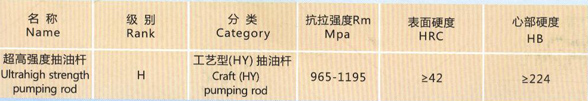HY型超高强度抽油杆是采用特殊的合金材料制造,经热处理使性 能达到超高强度的抽油杆。该杆与D级抽油杆相比,尺寸、结构基本相同,但具有比D级抽油杆更高的承载能力,即最小应力在0-102Mpa时,许用应力值超出D级抽油杆35%以上。